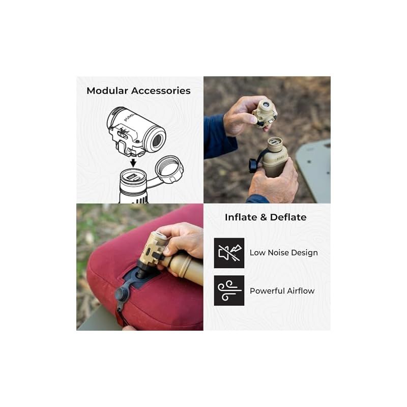 野外でのエアマットの設営など、送風が必要な場面で活躍。ノズルを付け替えてエアマット内の空気を吸い出すことができるため、収納・撤収もスムーズに行えます。