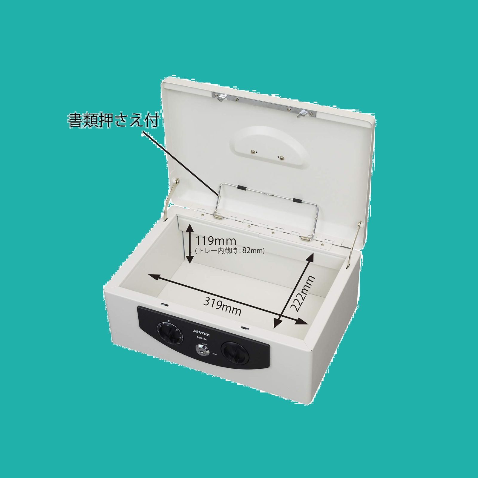Sentry(セントリー) SENTRY金庫 手提げ金庫 小型 キャッシュボックス 収納ボックス 鍵付き A4 ダイヤル+キーロック コインケース ワンタッチオープン ライトグレー ASB-36