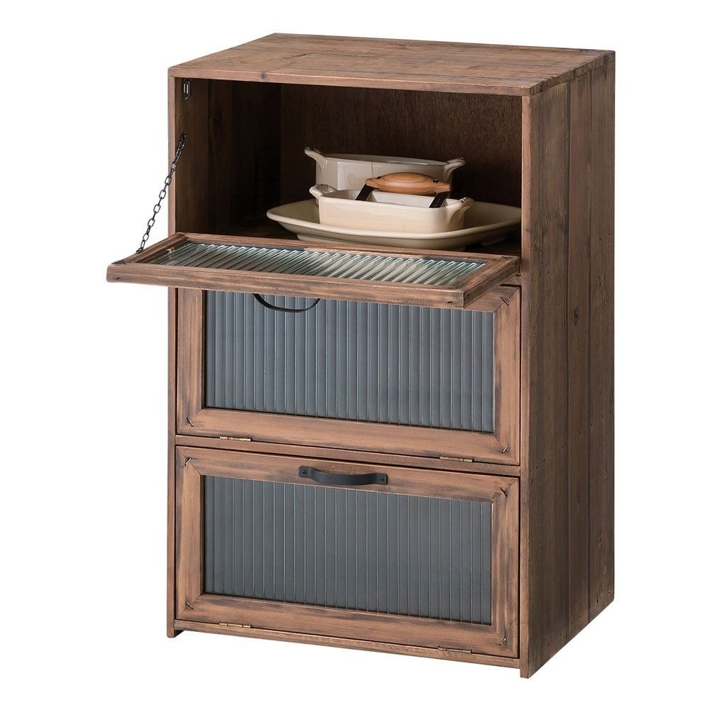 アンティーク調 3段 ガラスキャビネット 幅40 cm 収納ケース チェスト 収納ボックス