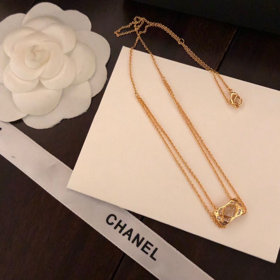 シャネルの象徴的な菱格紋デザインが光るこのネックレスは、精工による 18K 金メッキ仕上げで、本格的な高級感を演出します。満点のストーンワークで輝きを放ち、コーディネートにエレガントなハイライトを加えます。