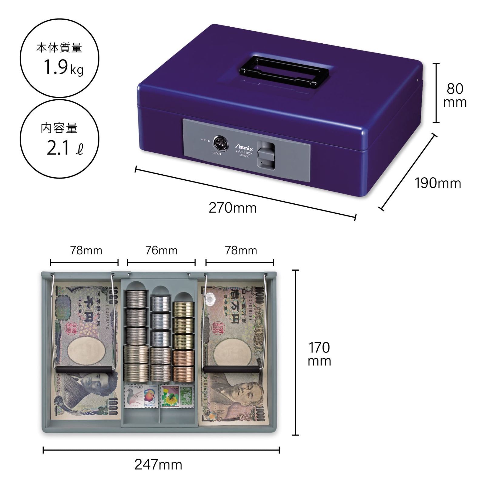 アスカ ASMIX 手提げ金庫 MCB250 コバルトブルー 収納書類 A5