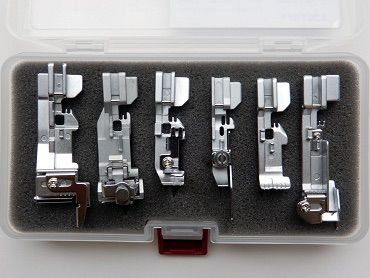 さらに幅広いソーイングをご希望の皆さまに、ロックミシンMOシリーズの押えアタッチメント6種類をセットにしました。