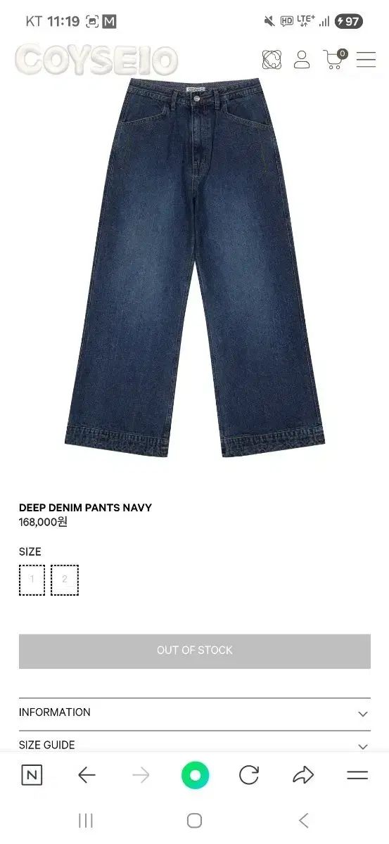 COYSEIO デニム ワイド パンツ ネイビー 1 サイズ
