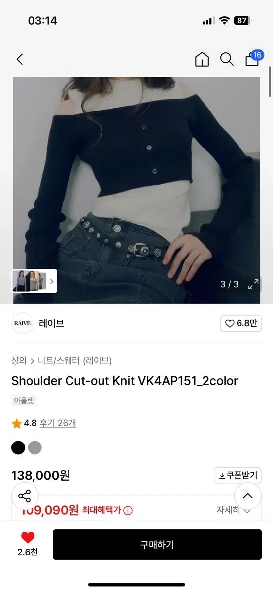 カリナが着用したオフショルダーニットです