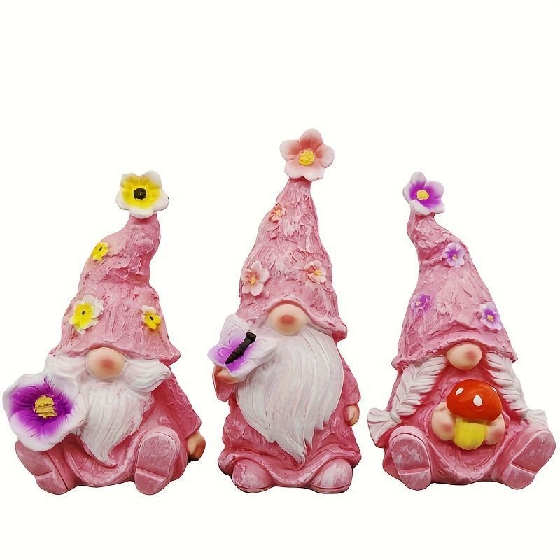 置物 オブジェ ガーデンオーナメント 3人の小人 ピンク パープル ライトグリーン 3種類 屋外 屋内 インテリア 玄関 リビング ダイニング 装飾 庭 ガーデニング ガーデン 樹脂 ギフト インテリア用品 贈り物 雑貨