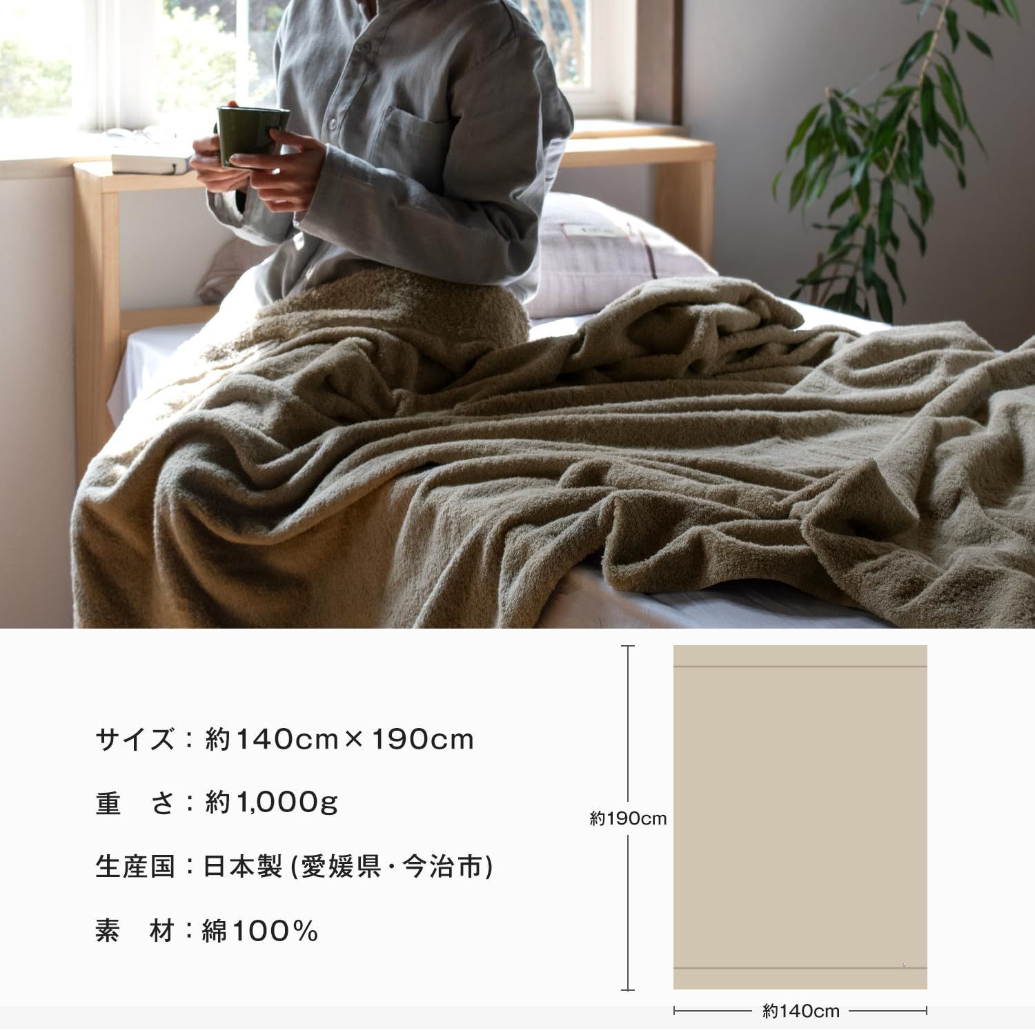 【商品詳細】サイズ:約140cm×190cm 重さ:1,000g 素材:綿100% 原産国:日本(愛媛県・今治市) 今治認定番号:第2016-1071号