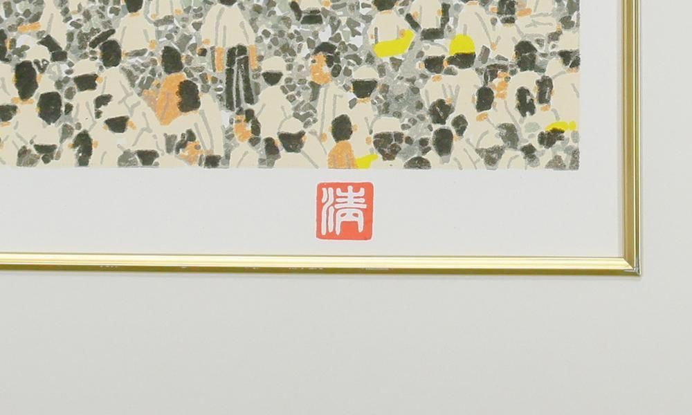 真作 WISH 山下清 長岡の花火 リトグラフ 約12号 大作 証明シール 〇放浪の天才画家 裸の大将 超絶技巧の貼絵