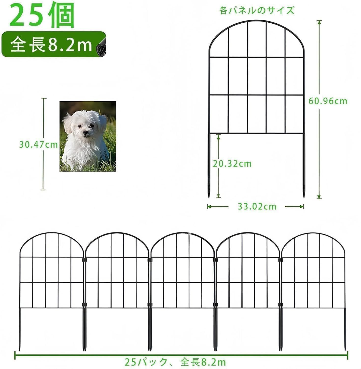 お得な数量セット - 幅60cm×高さ33cmのフェンスパネル25枚セット(総延長約8.2m)。広い庭の囲いや花壇仕切りに十分な大容量