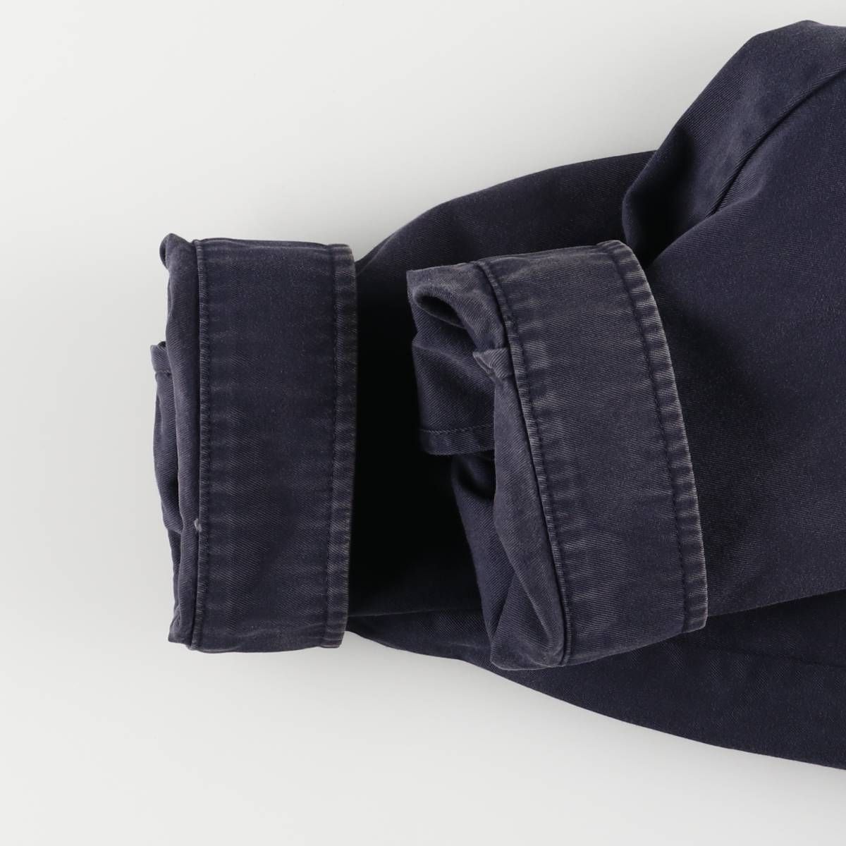 品質タグ劣化の為、素材不明です。この商品は、色褪せや変色、色むらを新品ならではのリアルな風合いとして味わえる一着です。