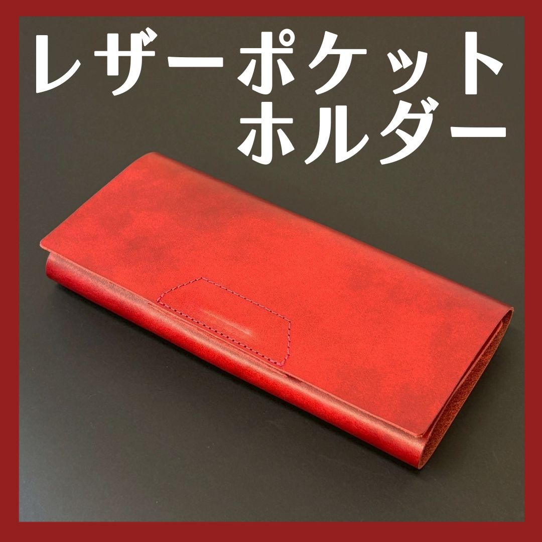 三つ折りレザーポケットホルダー レッド
