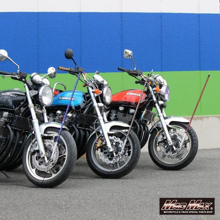 オートバイ用 旗棒黒 LED 発光 ブルー レッド ホワイト フラッグポール 900 mm