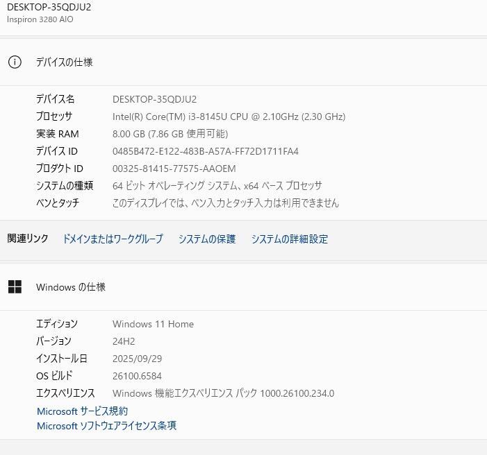 ■型番:Inspiron 3280 AIO