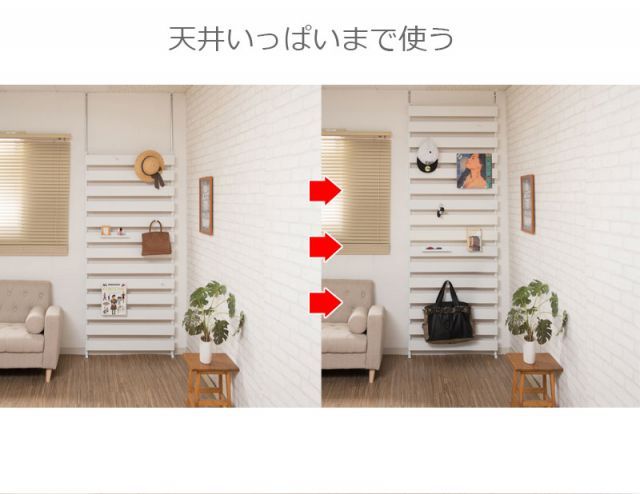 ■商品について/立体的にラダーを組み上げた突っ張り式ラダーラックのジョイントパネルパーツ。別売りの本体と併用することで、目隠しラダー面が約42cmプラスになり天井までキレイにデザインできます。