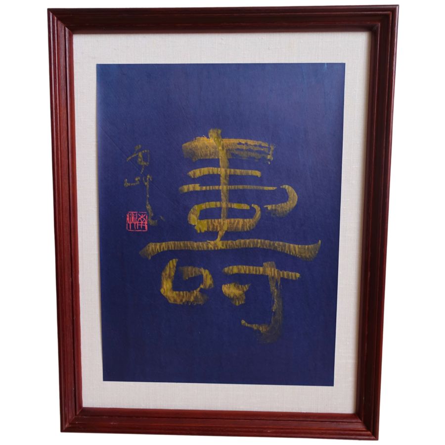 山口南艸氏が手掛けた「寿(ことほぎ)」は、金泥を施した日本の書作品です。