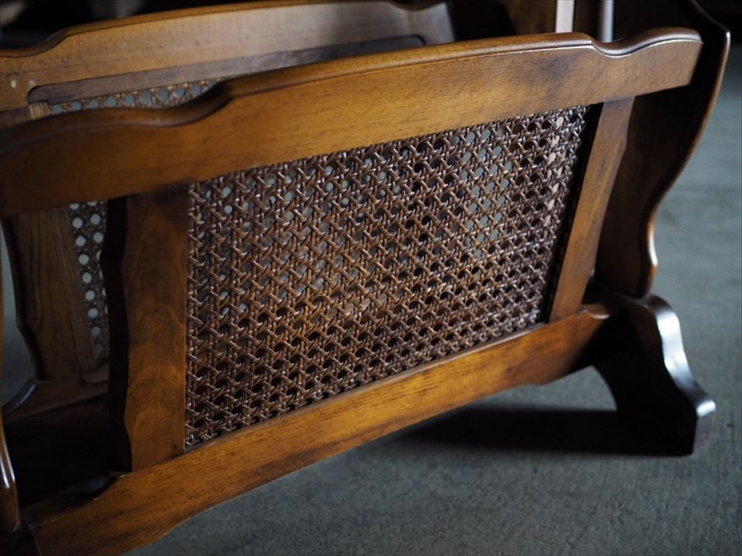 オールドカリモク ブックラック付 サイドテーブル ~1985。「オールド カリモク」とは、カリモク家具が1960年から1980年代にかけて製造していた、昭和の時代に人気だった家具の総称です。これらの家具は、現在では生産終了となっており、レトロな雰囲気を持つヴィンテージ家具としてコレクターに人気があります。