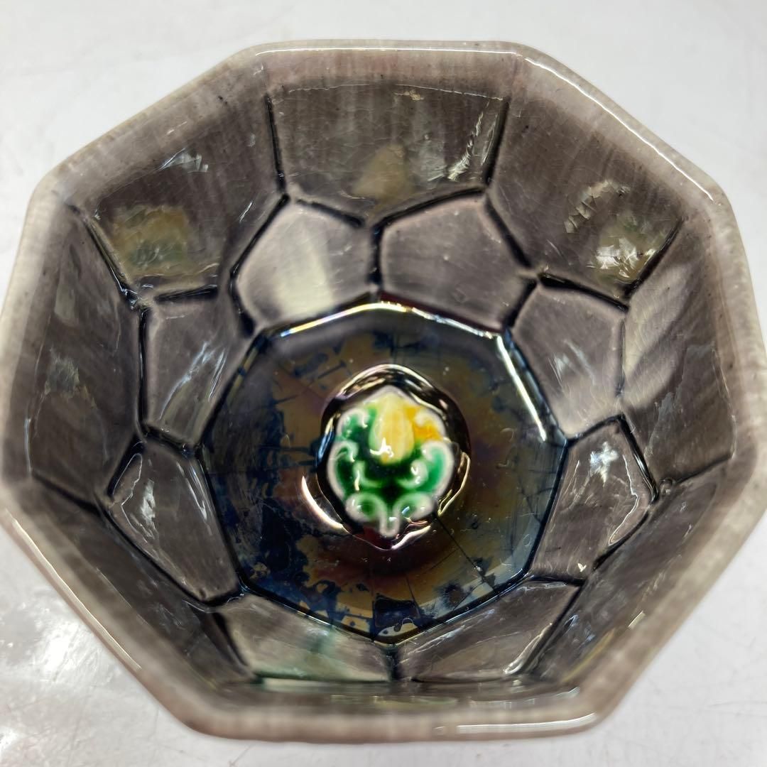 七代 加藤幸兵衛 むらさき銹彩貼花文八角高杯 共箱 トヒコ 東さ5-1218