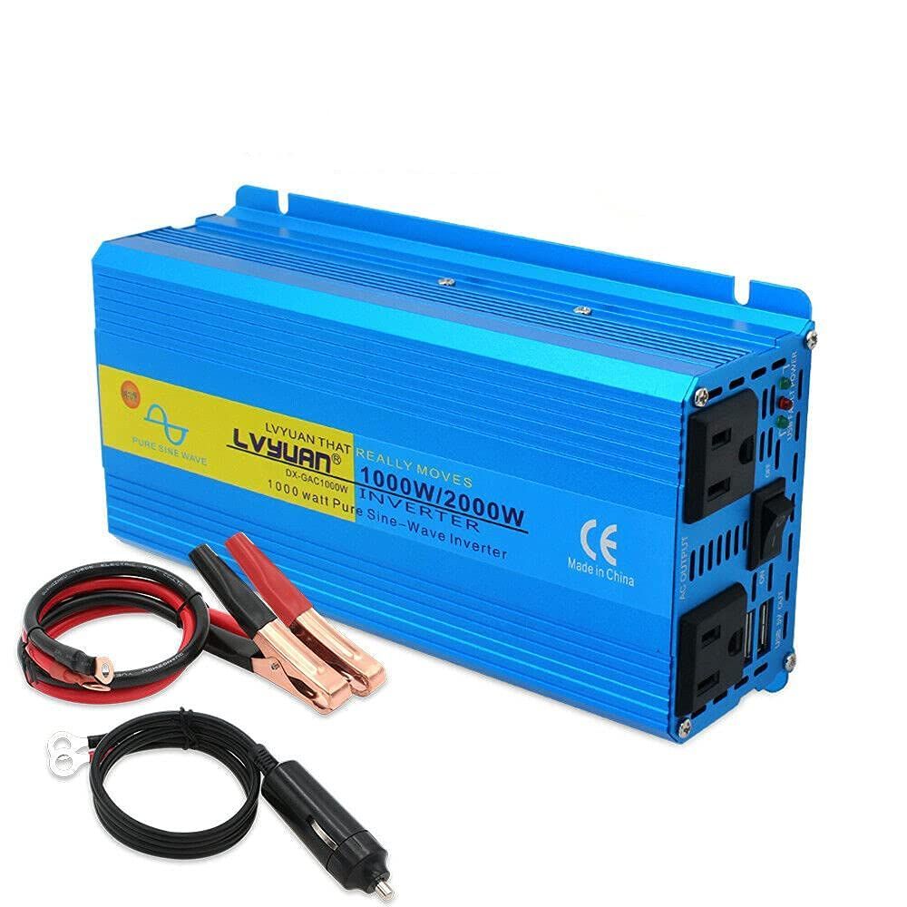 LVYUAN(リョクエン)インバーター 正弦波 12V 1000W 最大 2000W DC 12V(直流) AC100V(交流) 変換 AC コンセント×2、USBソケット×2 カーインバーター太陽光発電 災害 地震 防災用品 自動車 船 キッチンカー キャンピングカー 用品 キャンプ アウトドア、緊急時で大活躍 停電の対策!