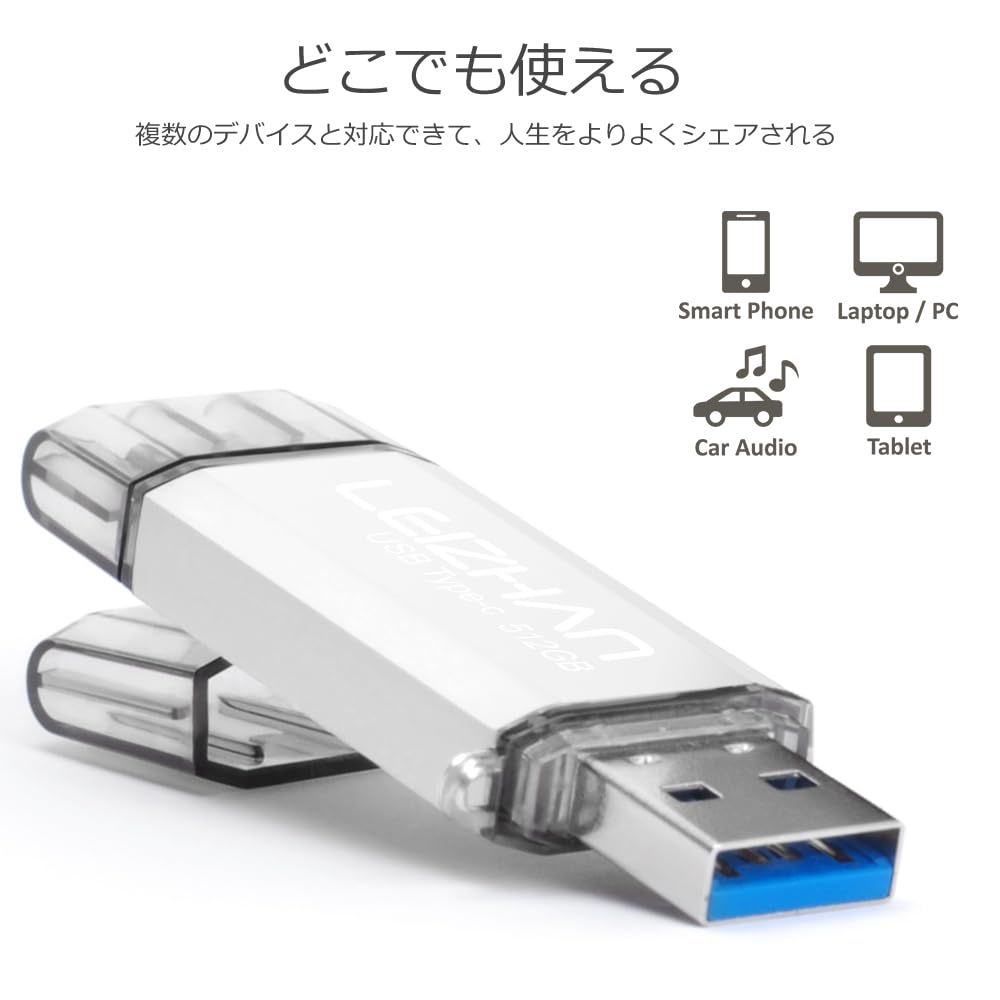 512 GB TYPE-C USBメモリー フラッシュドライブ LEIZHAN USB 3.0対応 高速転送OTG スマホ PC用 容量不足解消 マイクロペンドライブ 大容量Uスティック シルバー