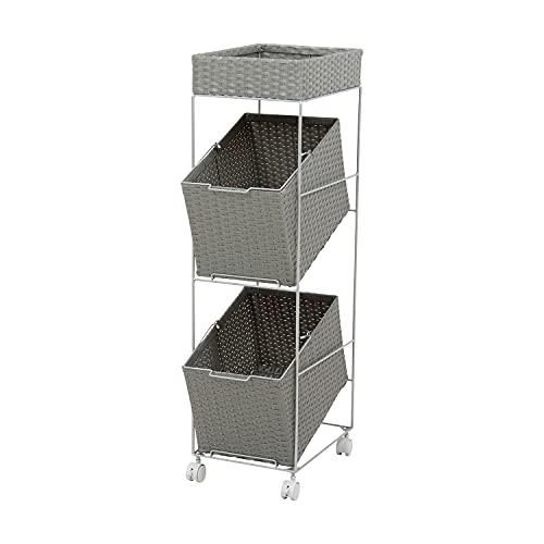 (約)幅28×奥行42×高さ103cm キャスター付 主材:スチール、張地:ポリエチレン 色柄物や汚れた洗濯物を分けて溜められるランドリーワゴン。バスケットが斜めになっているので衣類を入れやすい構造です。