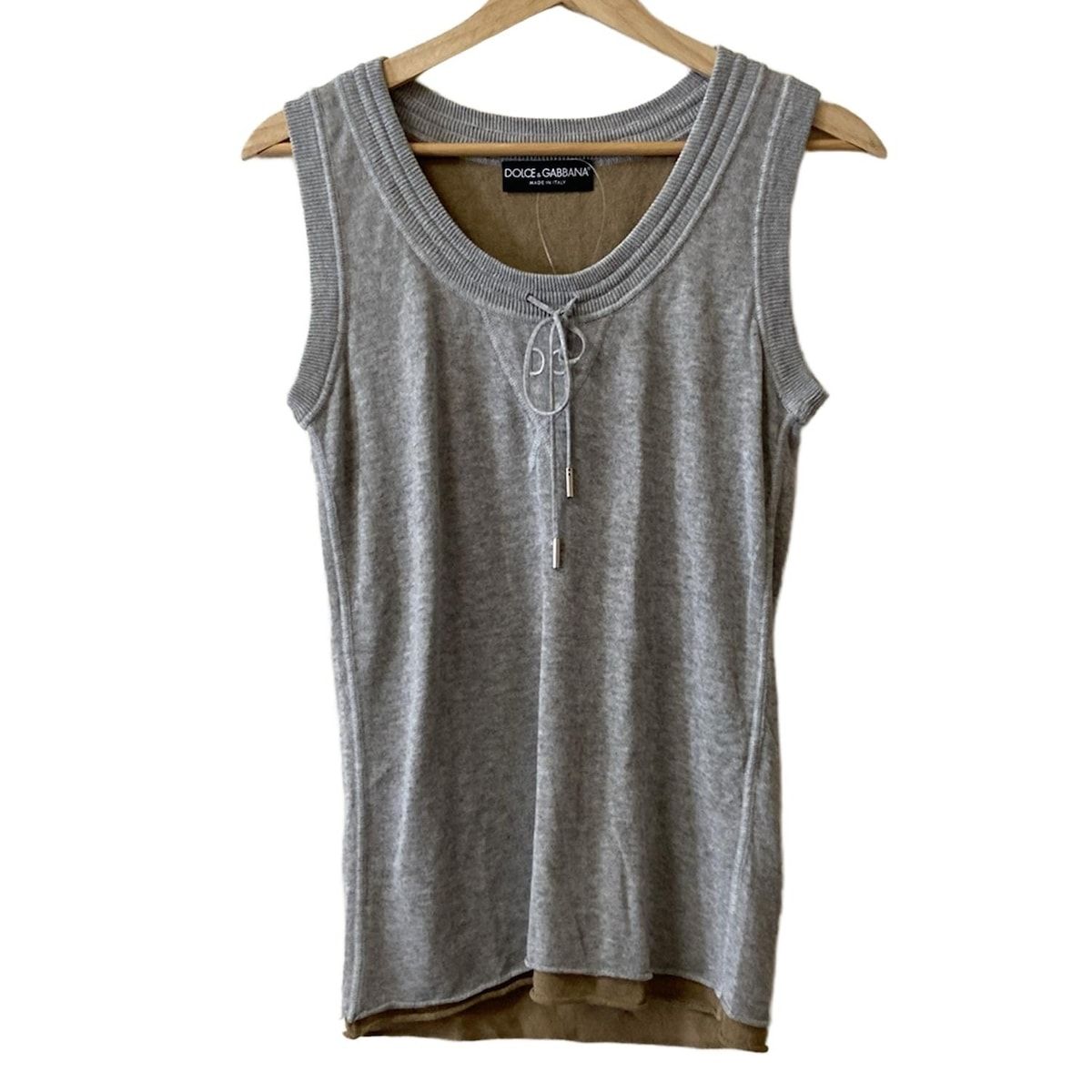 DOLCE-GABBANA ドルチェアンドガッバーナ ノースリーブセーター サイズ38 S レディース - ライトグレー×ライトブラウン クルーネック