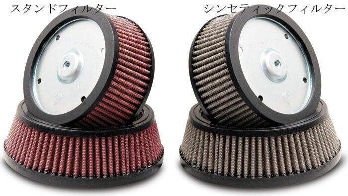 【シンセティック】 合成素材のハイフロフィルター、ウォッシャブルタイプで洗浄して再利用可能。乾式タイプなのでオイル塗布が不要で、雨天でもレインソック不要です。