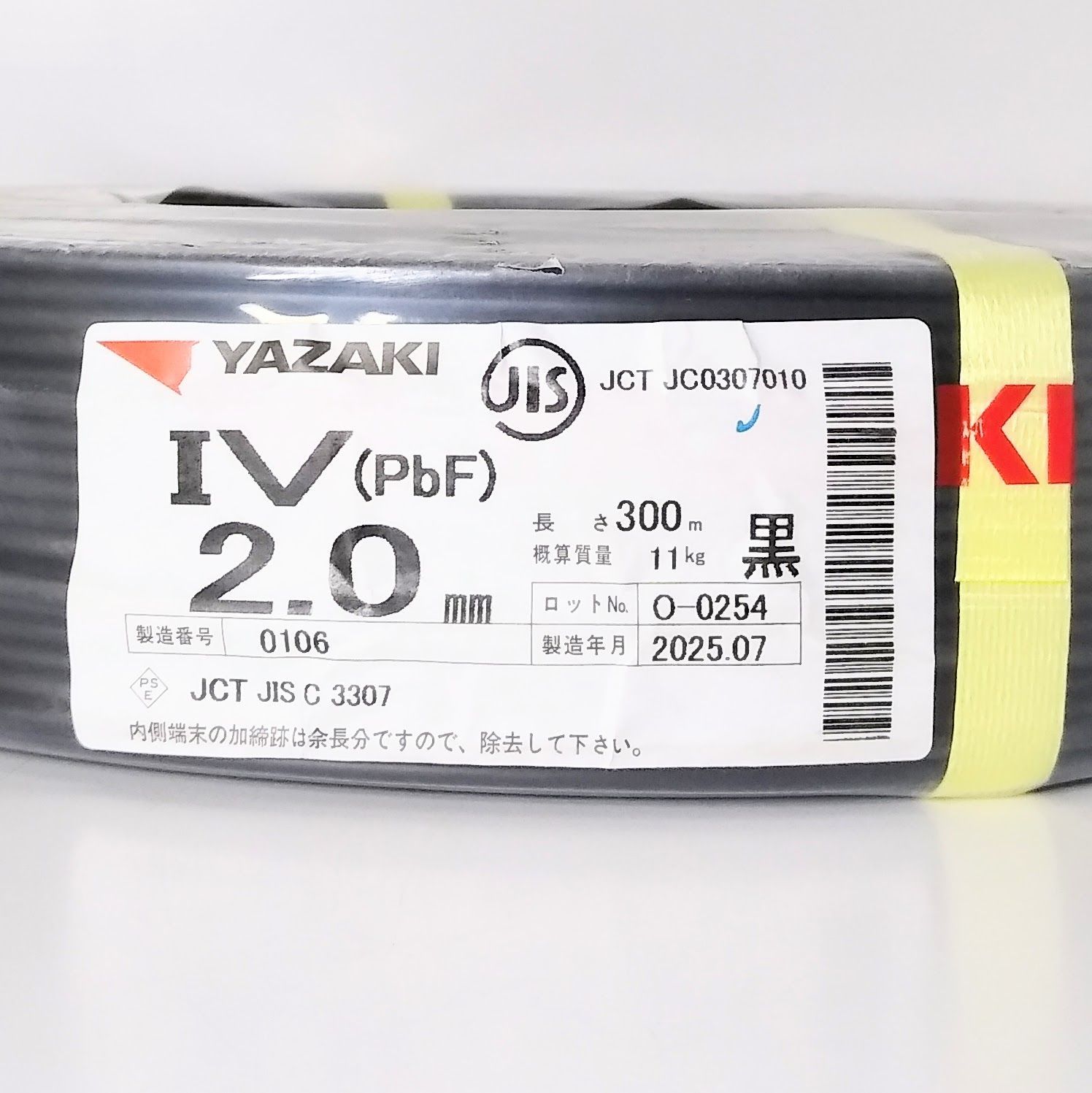 矢崎電線 IV (PbF) 2.0㎜ (黒)300m