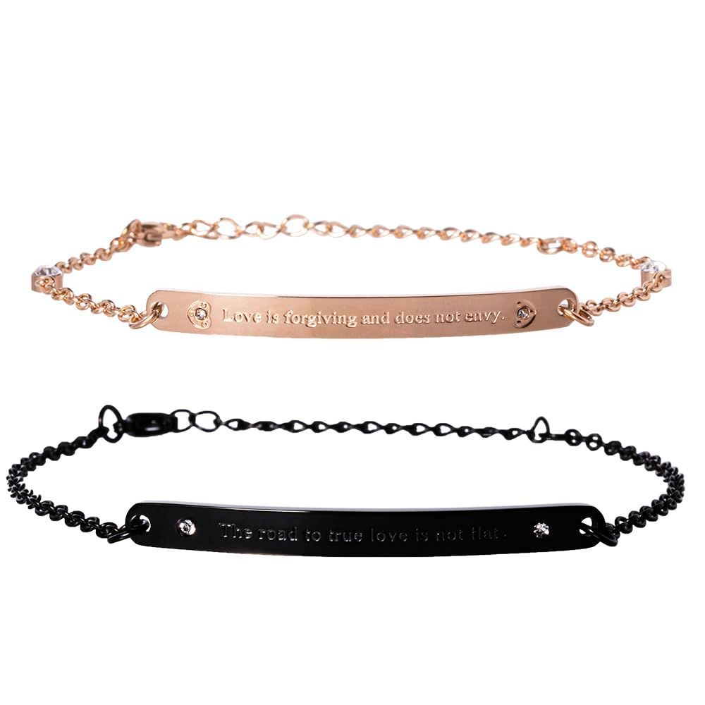 ブラック&ピンクゴールド [felicitations] ペアブレスレット カップル ステンレス メンズ レディース ブレスレット (ブラック&ピンクゴールド)