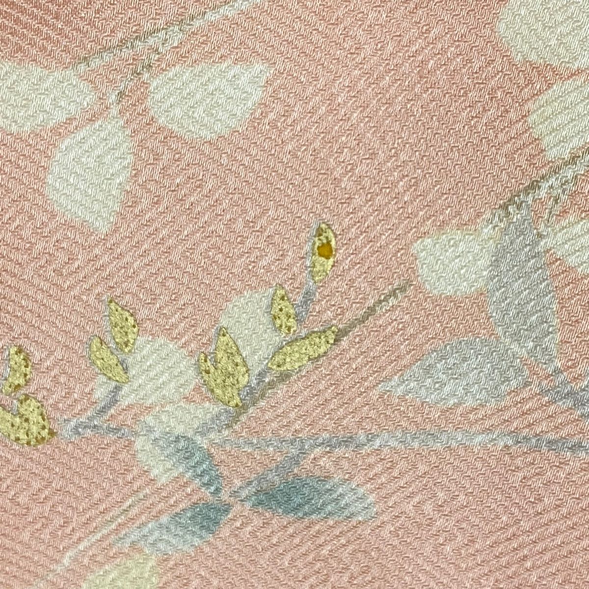 訪問着 身丈162 cm 裄丈67 M 袷 枝葉 草花 刺繍 金彩 ピンク 正絹