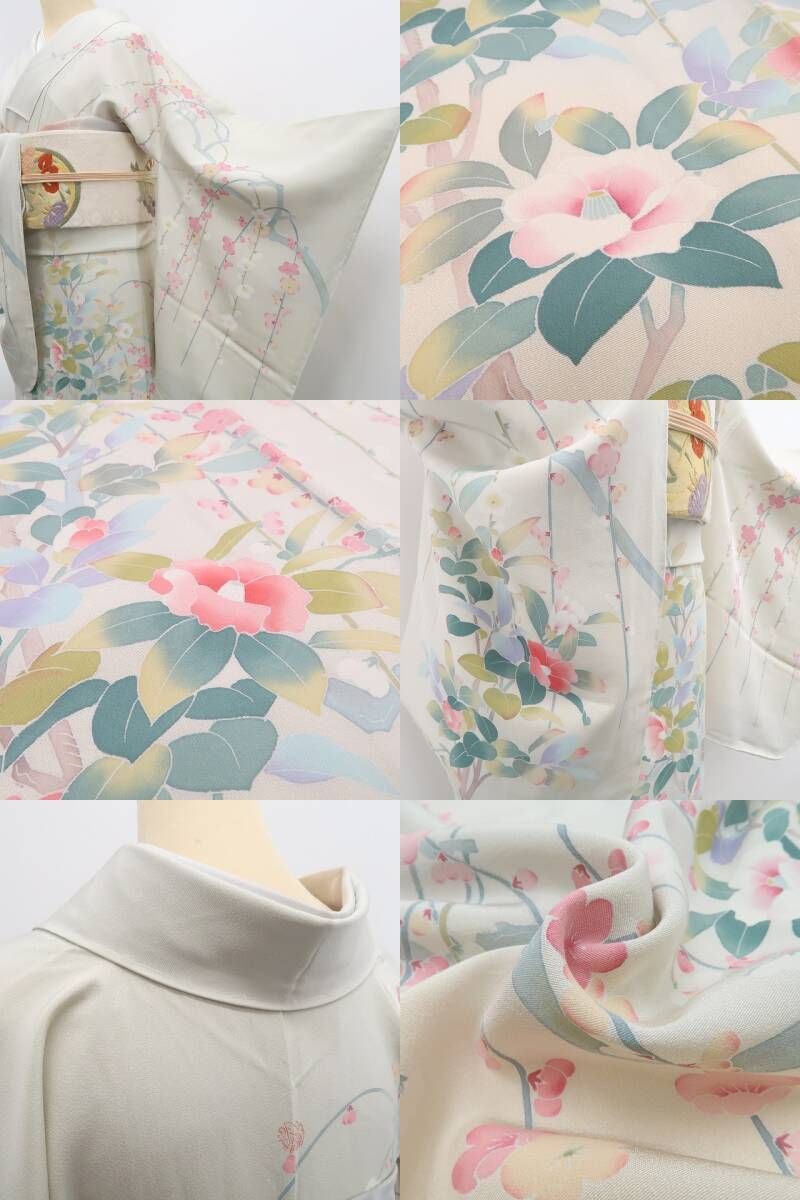❁tomihisa❁ 手描き友禅 椿 落款 寛 着物 お洒落びとの密かな愉しみ 染め花に心したため季節は巡る 正絹 仕付け糸付 訪問着 7070