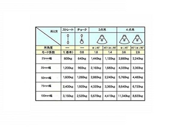 ・最大使用荷重:ストレート吊1200kg、チョーク吊960kg