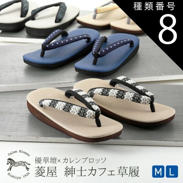 種類8 8 Lサイズ 4 紳士用 菱屋謹製 カレンブロッソ ソフト鼻緒 メンズ カフェ草履 M 全4柄 st-108