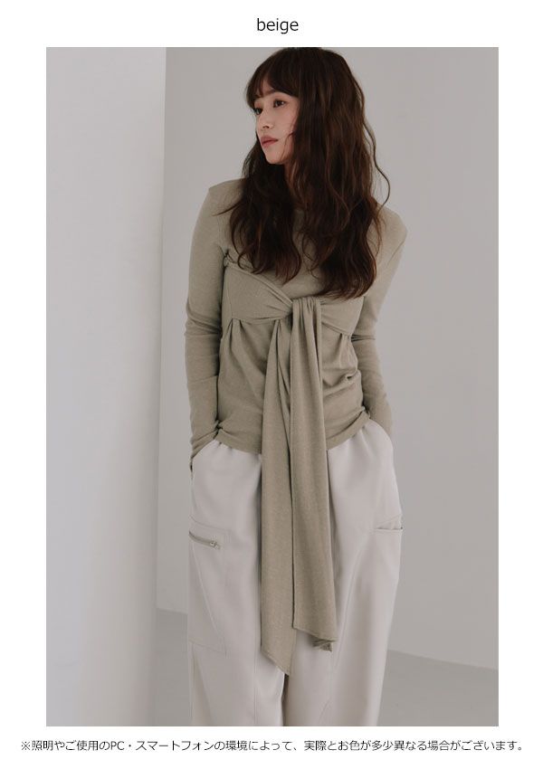 ヘラ Hella 25秋冬 トップス back tie napped tops ブラックタイナップドトップス ミドル丈 長袖 h 253-12