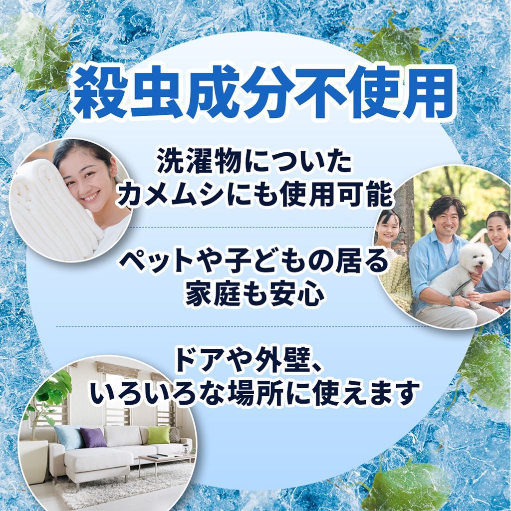 カメムシを凍らせて駆除!臭いを出す前に瞬間冷却で退治できる殺虫剤不使用の安心スプレー。