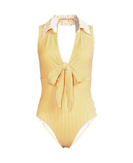 ランズエンド レディース ポロシャツ トップス Women s Polo High Leg One Piece Swimsuit Yellow multi floral stripe