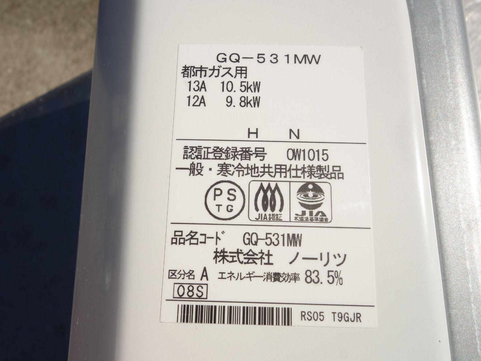 M ノーリツ ガス瞬間湯沸かし器 給湯 ガス給湯器 2021年 都市ガス 天然ガス 12 A 13 元止め式 台所 GQ-531 MW 27970