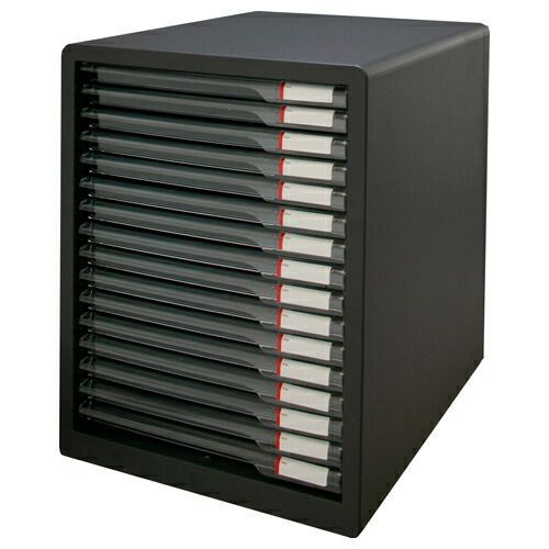 ●規格:超浅型16段●外寸:幅265×奥350×高345mm●重量:約4.8kg●引出内寸:幅230×奥320×高14mm●材質:本体=ハイインパクトスチロール,引出=スチロール樹脂●インデックスシール20片付