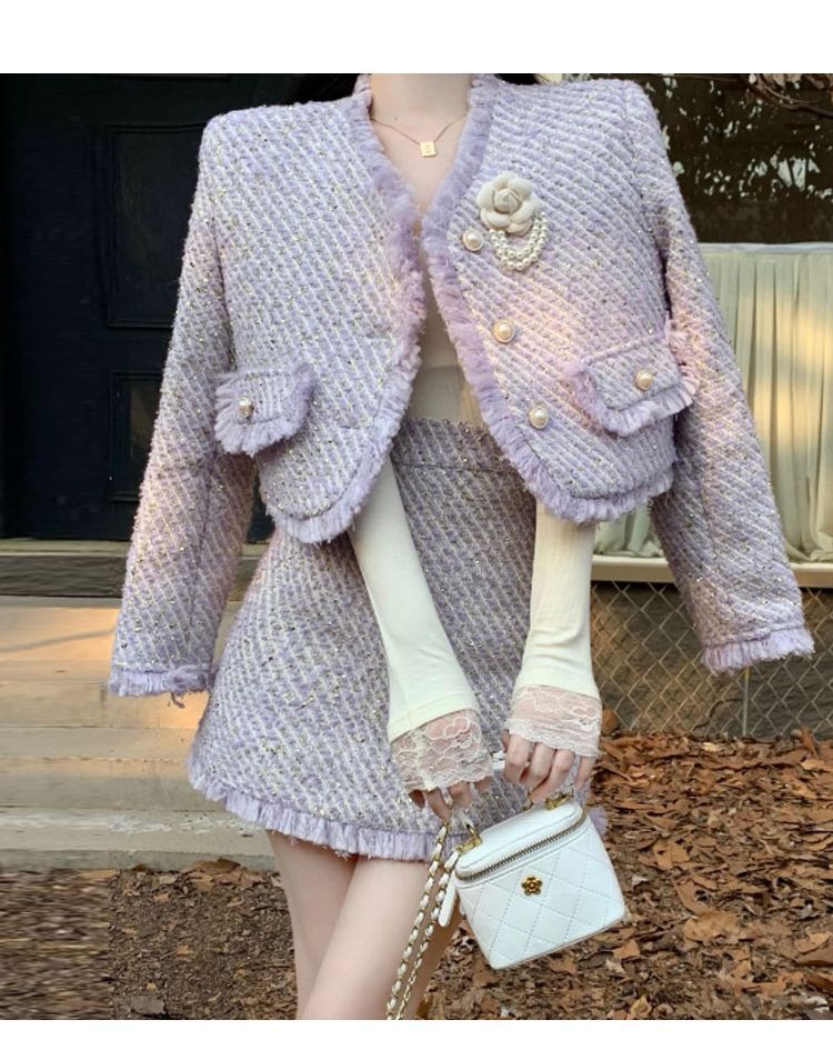 セットアップ ツイード レディース ジャケット スカート 秋冬 韓国ファッション 上下セット レディースファッション スーツ お呼ばれ セクシー xxf 08