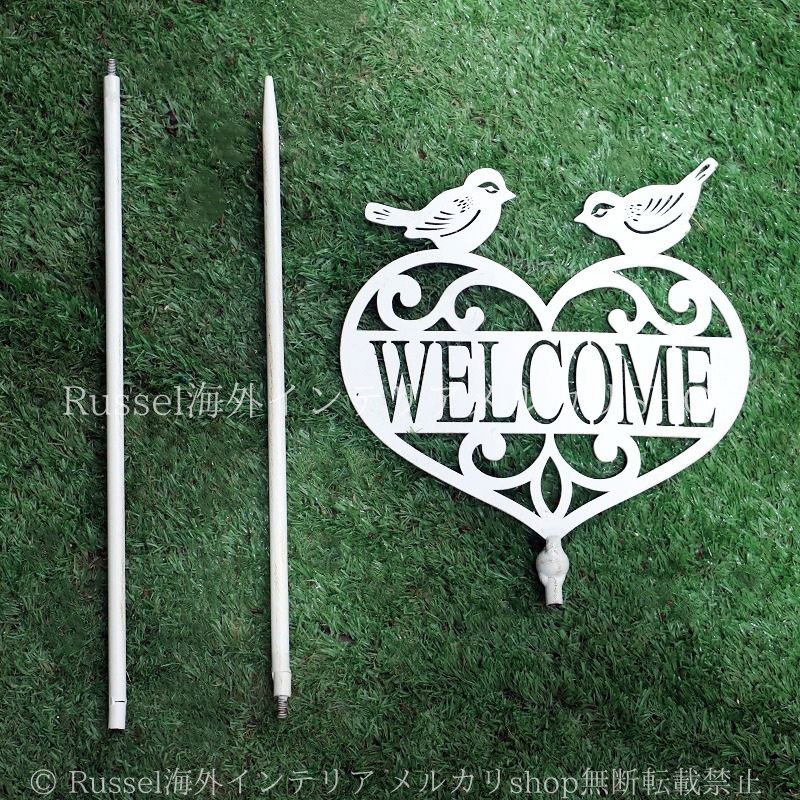 ガーデンピック ウェルカムサイン ガーデンオーナメント ガーデンスティック Welcome 鉄製 ホワイト ハート 鳥 ガーデニング 雑貨 ガーデン雑貨 ガーデンインテリア ガーデン インテリア 庭の装飾 お洒落 おしゃれ 8-14