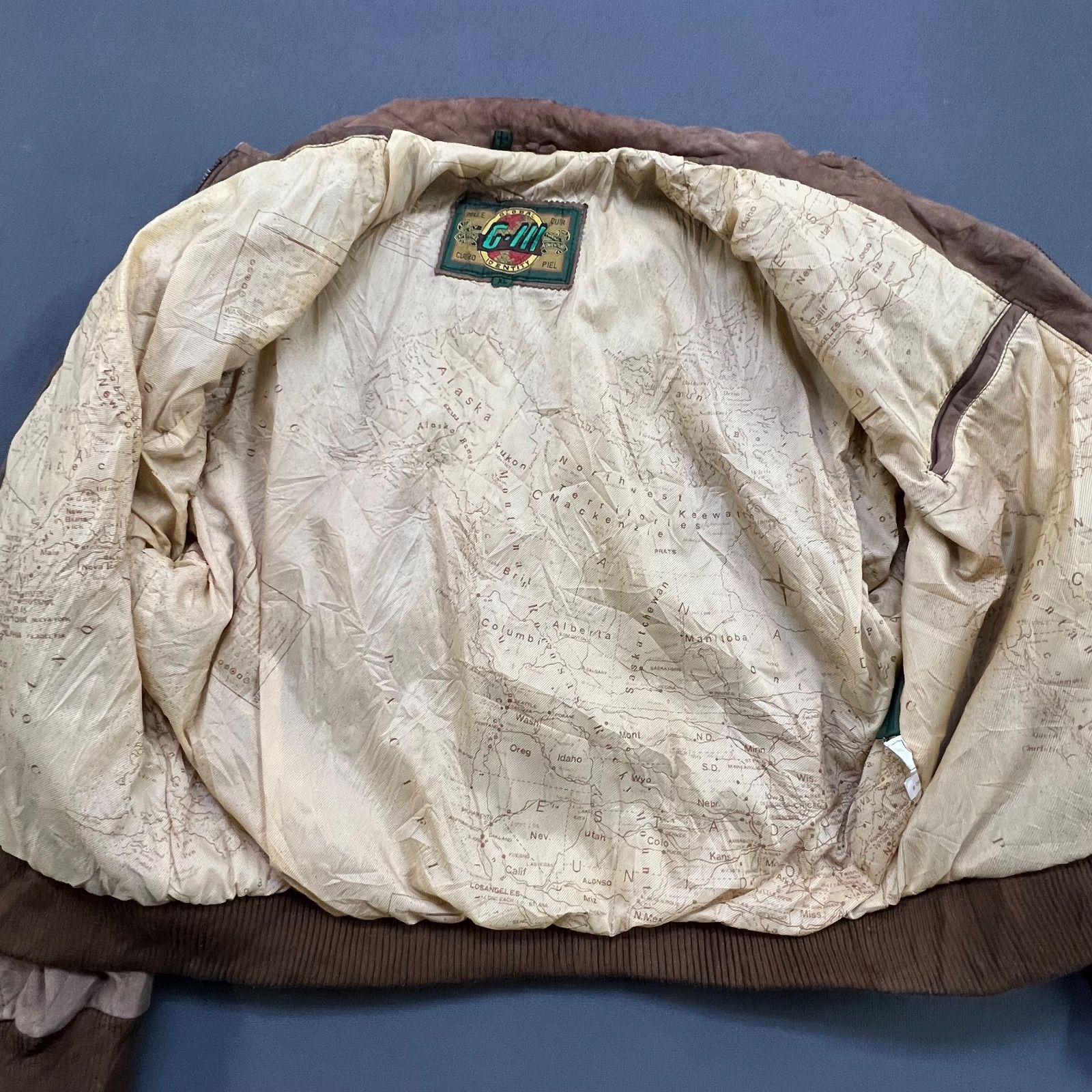 XL ヴィンテージ 本革 G-M GLOBAL スエードジャケット 80 s 世界地図 裏地 ブルゾン 6007 ST