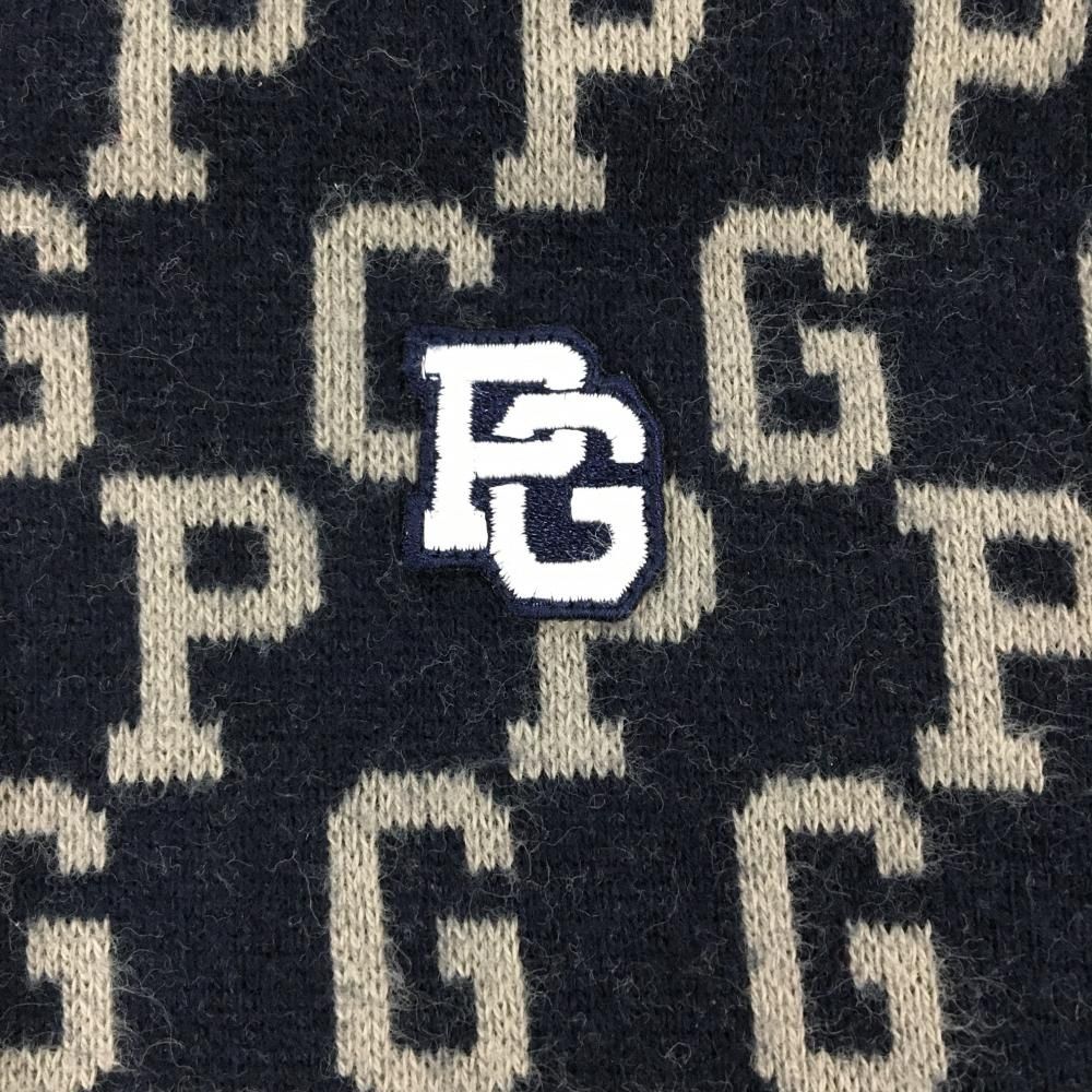 パーリーゲイツ ハイネックセーター ネイビー×グレー ロゴ総柄 コットン100% レディース 1 M ゴルフウェア モデル PEARLY GATES
