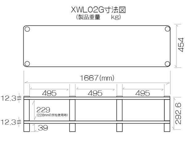 ●寸法:W1667mm x D458mm x H292.6mm(スパイクを除く)