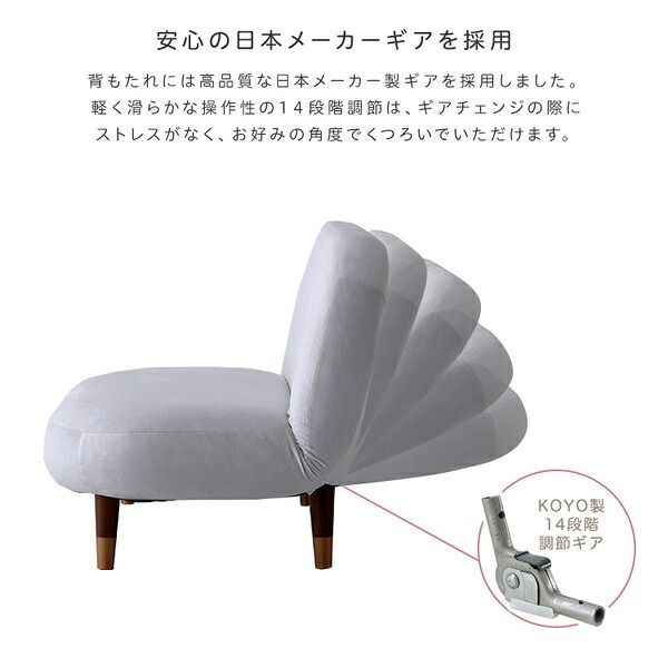 背もたれは日本メーカーの14段階のリクライニング付きで、実用性も兼ね備えています。