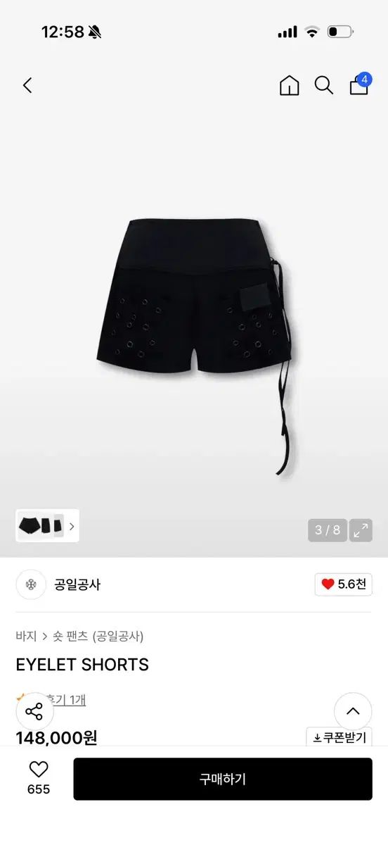 0104 EYELET SHORTS ブラック