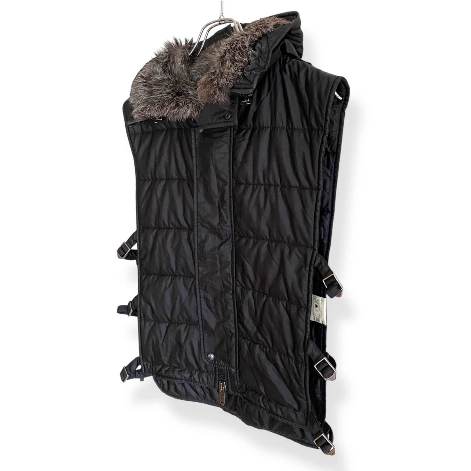 ERMANNO エルマンノシェルビーノ ブラック ダウンベスト ナイロン リアルファー付きフード イタリア製 48 Lサイズ相当 レディース ラグジュアリー 秋冬 737 KZ