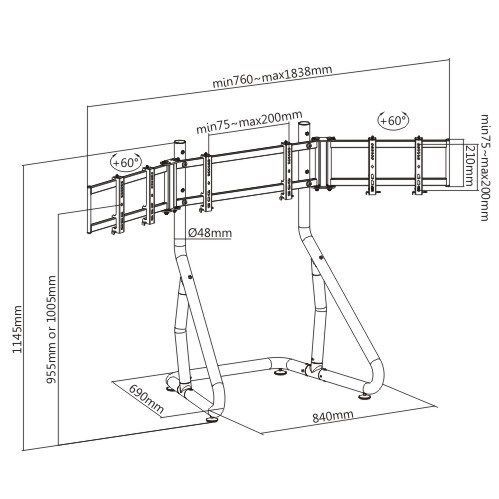 Monitor Stand DMS-1 トリプル モニタースタンド AP 2対応 24-32インチ DRS-1 高さ調整可 フロアモニタースタンド