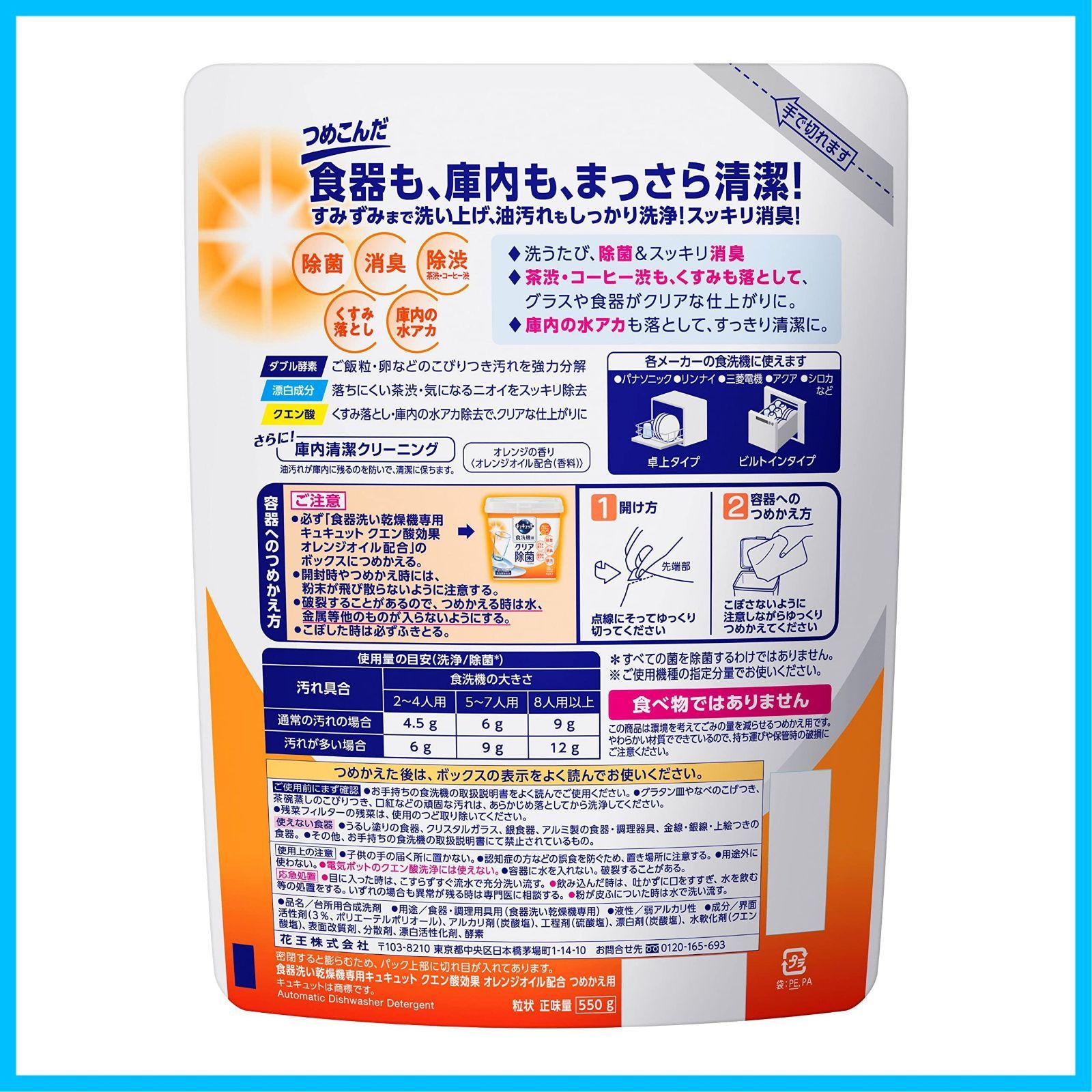 商品 キュキュット 食器用洗剤 食洗機用 クエン酸オレンジオイル 詰め替え 550 g ×