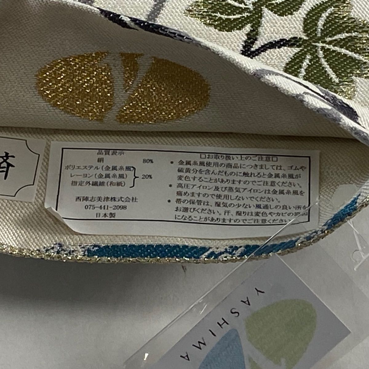 半幅帯 落款 唐草 金銀糸 クリーム 正絹