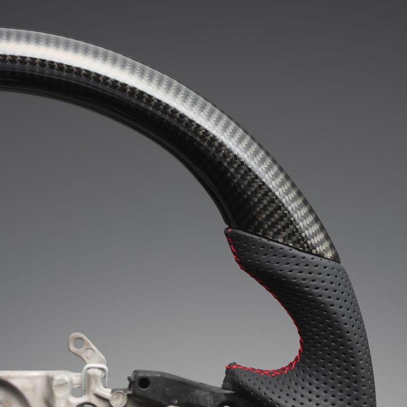 ステアリング部分は本物のカーボン素材を贅沢に使用し、見た目の美しさと実用性を兼ね備えています。