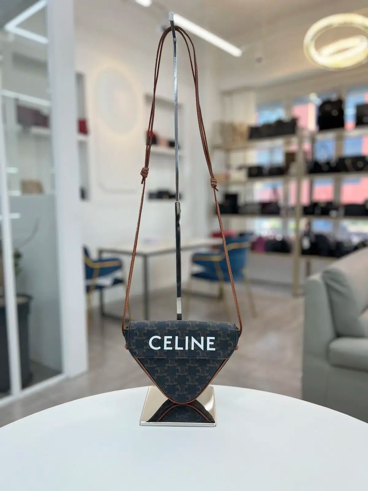 ブランド ラックスオール Celine セリーヌ ロゴ トライアングル スモール バッグ タン クロスバック