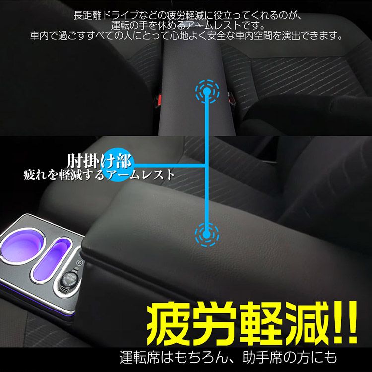 ■【快適な使い心地】アームレスト コンソールは柔らかな素材ですので、長時間のドライブでも疲労を軽減してくれます。アームレストの蓋を開けると収納スペースとなっており、小物などを入れるのに便利です。